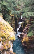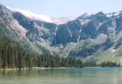 The AVALANCHE LAKE TRAIL begins at the same trailhead as the Trail of the Cedars. The biggest problem with this trail is finding a place to park - this is a very popular trail. The trail is nearly 3 miles one way and most of it is in a forest. The elevation gain to the lake is about 500 feet, but it doesn't seem difficult - actually, 500 feet over 3 miles is considered fairly easy - compare this with the Loop Trail which gains 2000 feet over 4 miles! You'll notice I didn't name that as one of my favorite hikes - I hiked it uphill once - and that's enough. Along the trail to Avalanche Lake you'll find huge boulders just a ways off the trail - reminders of the glaciers that carved their way down the sides of the surrounding mountains. Speaking of mountains, at the start of the trail, Mount Cannon is on your left and Mount Brown is on your right. Because of the forest, you won't really see them. You will initially hike along Avalanche Creek but it soon disappears from view. Near the lake the trail breaks out of the trees and you can see Bearhat Mountain on your left. Then...there's the lake!! Absolutely beautiful, with many waterfalls plunging from Sperry Glacier at its head, this is a spot that is often photographed. I never seem to capture its beauty, though. The lighting never seems right. Read about Avalanche Lake. BE CAREFUL!!! This trail is bear country! |