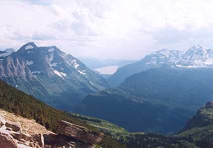stretches the Lake McDonald valley. Don't worry about being hot when you get to the top. There ALWAYS seems to be a brisk wind up there. The downside is the steepness and rockiness of the trail, and in places, the trail is only about a foot wide. Be careful, bring water and JUST DO IT!!! |